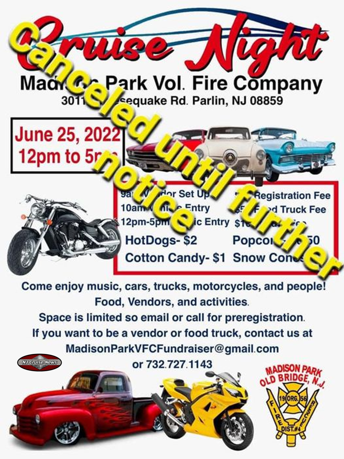 Free for Spectators Car Registration. 9 am to 3 pm. 100 free listings for NJ car shows cruise nights swap meets and cars for sale ads.